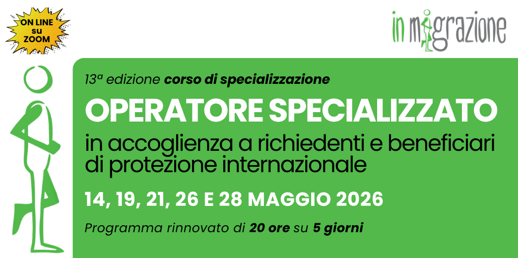 Aperte le iscrizioni per la TREDICESIMA EDIZIONE del corso specialistico dedicato agli Operatori e operatrici dell’Accoglienza impegnati nella relazione d’aiuto in progetti per richiedenti e beneficiari di protezione internazionale, con particolare riferimento ai progetti SAI (ex SIPROIMI-SPRAR) e ai Centri di Accoglienza Straordinaria (CAS).