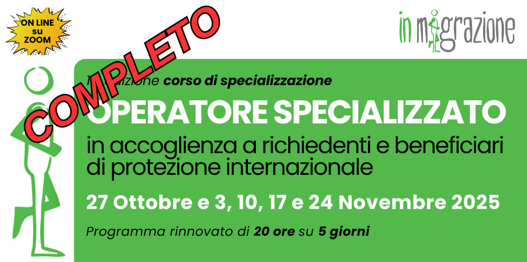 Aperte le iscrizioni al CORSO PER OPERATORI E OPERATRICI DELL'ACCOGLIENZA - 11ª EDIZIONE - impegnati nella relazione d’aiuto in progetti per richiedenti e beneficiari di protezione internazionale, con particolare riferimento ai progetti SAI (ex SIPROIMI-SPRAR) e ai Centri di Accoglienza Straordinaria (CAS).